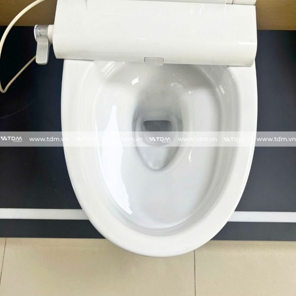 - Bàn cầu sử dụng 100% lượng nước xả từ phía trên, tạo nên dòng xoáy cực mạnh rửa trôi mọi vết bẩn.