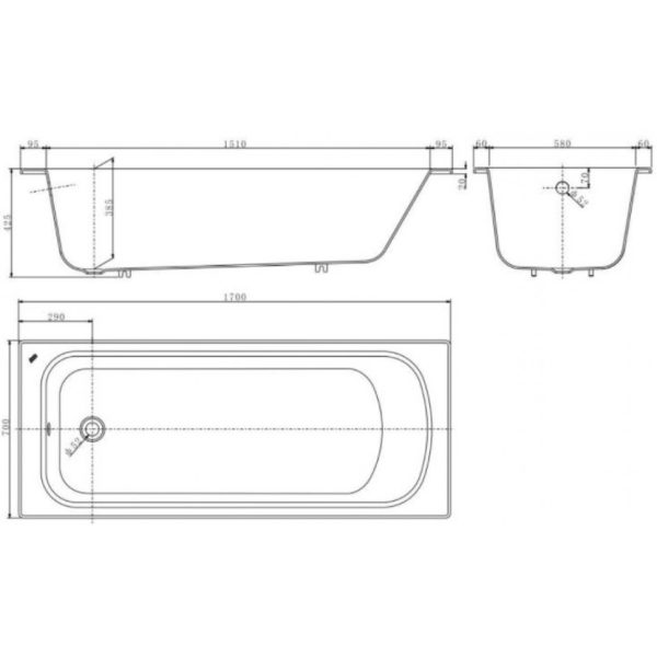 Bản vẽ kích thước bồn tắm BTAS2708 American Standard 1.7 mét