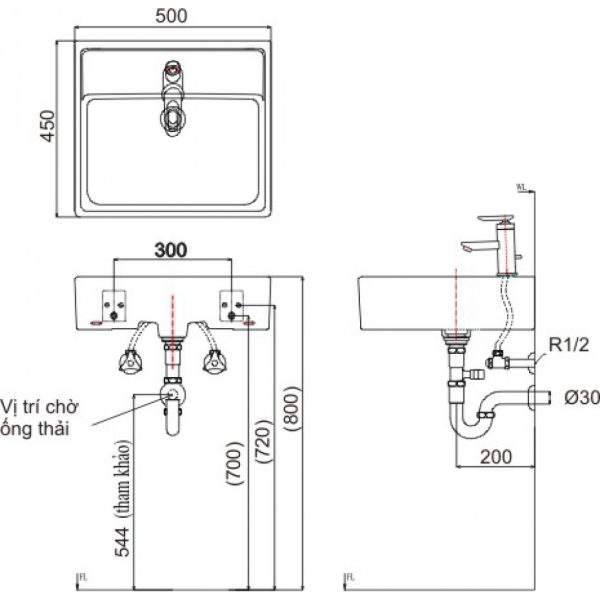 Bản vẽ bồn rửa mặt INAX AL293V Aquaceramic