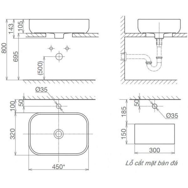Bản vẽ kỹ thuật chậu lavabo V 25 Viglacera