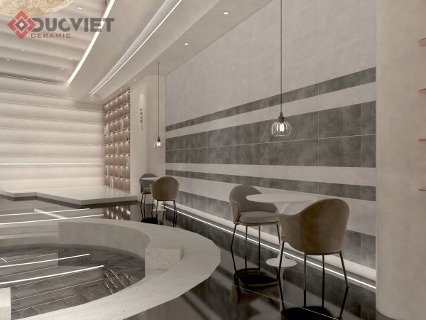 – Họa tiết vân xi măng được in sắc nét với gam màu xám trung tính là chủ đạo, giúp gạch phù hợp đa dạng phong cách thiết kế khác nhau.