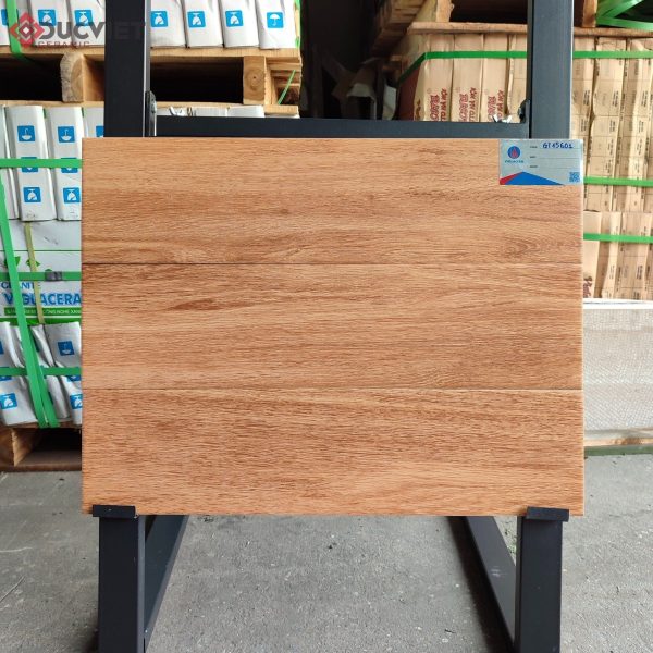 GT15601 là gạch thẻ giả gỗ của Viglacera. Đây là sản phẩm có Semi porcelain (Bán sứ), với nguyên liệu đầu vào được tuyển chọn và tinh lọc kỹ càng. Sau khi nung trong nhiệt độ trên 1200°C, tạo nên mật độ xương gạch chắc chắn và có thể chịu được lực tác động lớn nhỏ khác nhau (≥ 5 Mohs) mà vẫn bền bỉ theo thời gian.