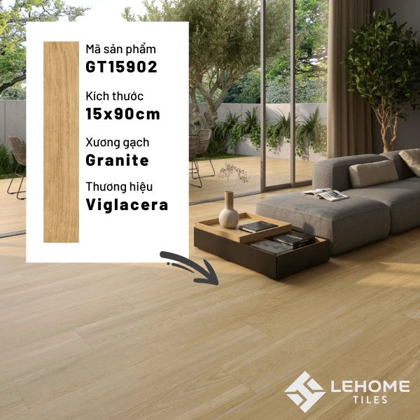 Gạch Viglacera GT15902 được thiết kế với họa tiết vân gỗ chân thực, sắc nét, mô phỏng vẻ đẹp mộc mạc của sàn gỗ tự nhiên. Tông màu gỗ tươi sáng mang đến cảm giác ấm áp, thư thái, giúp không gian sống trở nên gần gũi và đẳng cấp hơn. Với thiết kế này, bạn có thể dễ dàng kết hợp gạch với nhiều phong cách nội thất, từ hiện đại, tối giản đến phong cách Bắc Âu (Scandinavian).