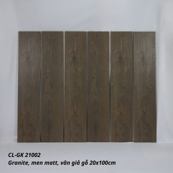 CL-GK21002 còn được phủ một lớp men nhám trên bề mặt cùng với hiệu ứng khuôn chày làm nổi các họa tiết vân gỗ tăng thêm tính chân thật của gạch. Nên gạch có thể thay thế được gỗ thật mang đến cảm giác chân thật nhất cho không gian ngôi nhà.