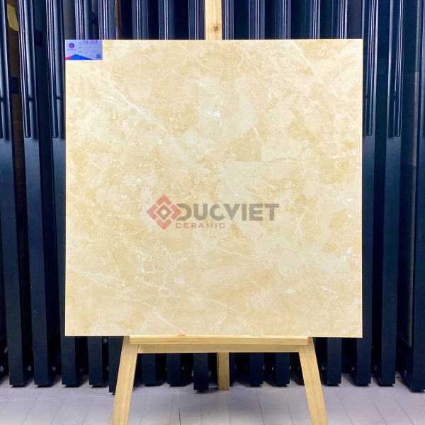 Sản phẩm in bằng công nghệ hiện đại, nên các họa tiết vân đá Marble được in tỉ mỉ qua từng đường vân trên nền màu vàng. Kết hợp với lớp men bóng, có hiệu ứng tráng gương đã làm tăng thêm tính sang trọng ở sản phẩm. Khi sử dụng TB808 vào trong ngôi nhà giúp không gian căn phòng trở nên bừng sáng và mở rộng hơn. Đặc biệt, sản phẩm là gạch granite men bóng có độ cứng bề mặt cao ( ≥5 Mohs), nên sẽ khó trầy xước hơn so với các dòng gạch men bóng thông thường khác. Từ đó giúp gạch bền bỉ giữ nguyên nét đẹp ban đầu sau một thời gian dài sử dụng.