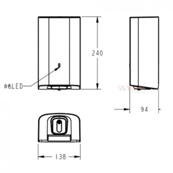- Kích thước: 138 x 94 x 240 mm (DxRxC)