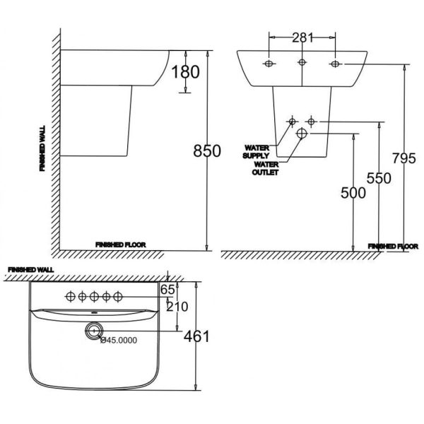 - Tên sản phẩm: Lavabo treo tường American chân ngắn