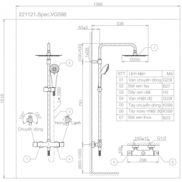 Bản vẽ kỹ thuật vòi sen nhiệt độ VG598