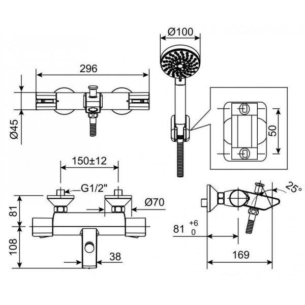 Bản vẽ kích thước sen tắm WF4946 American