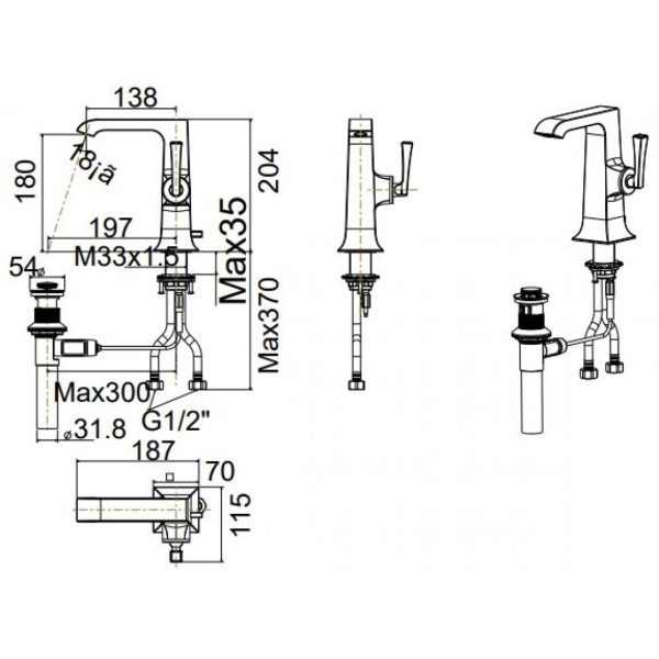 Bản vẽ kích thước vòi chậu American Standard WF1601