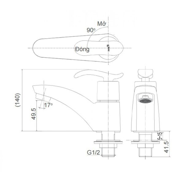 - Áp lực nước : 0.05 MPa ~ 0.75 MPa