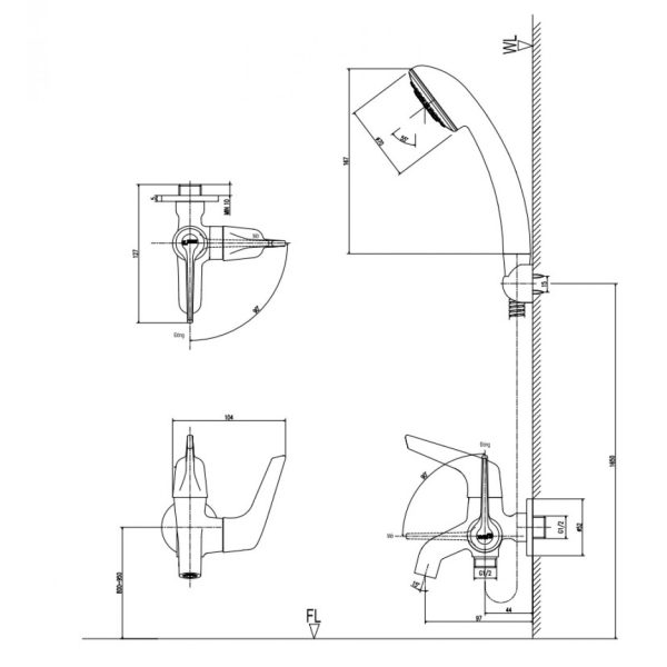 Bản vẽ vòi hoa sen lạnh BFV17-4C Inax