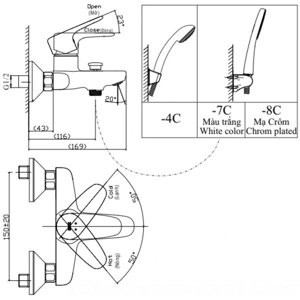 - Áp lực nước : 0.05 MPa ~ 0.75 MPa