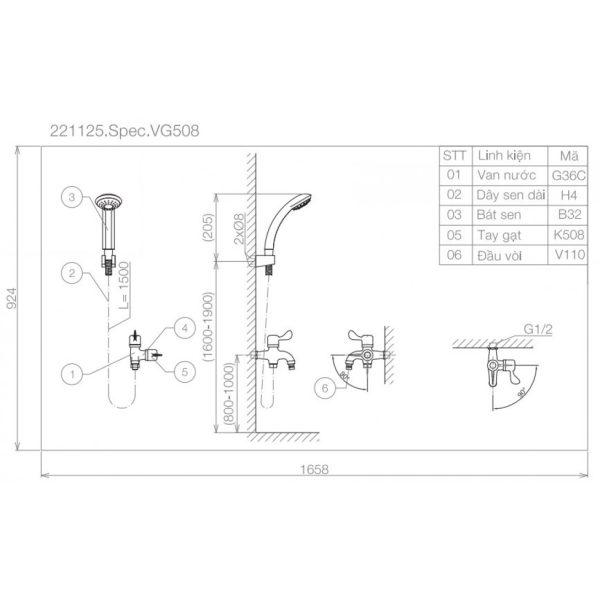 Bản vẽ kỹ thuật vòi sen tắm lạnh VG508