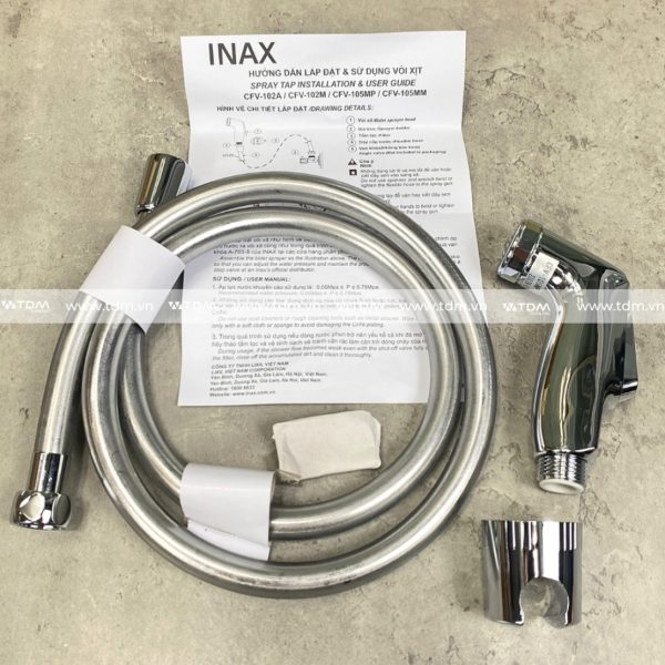 - Vòi xịt rửa Toilet INAX CFV-105MP Lõi van đồng, với dây vòi PVC Metallic 5 lớp ,đến từ thương hiệu thiết bị vệ sinh INAX